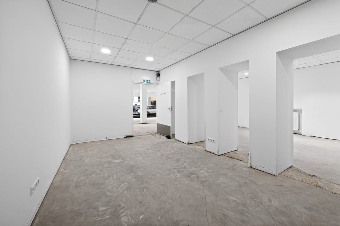 A spacious vestibule provides access to the entrance of the retail unit. Through a large glass door – enhancing both the sense of space and natural light, further supported by the large display windows – one enters the shop area. If desired, the door can remain open in winter with the aid of a heated air curtain. As the premises previously housed an art gallery, ample adjustable artificial lighting has been installed.