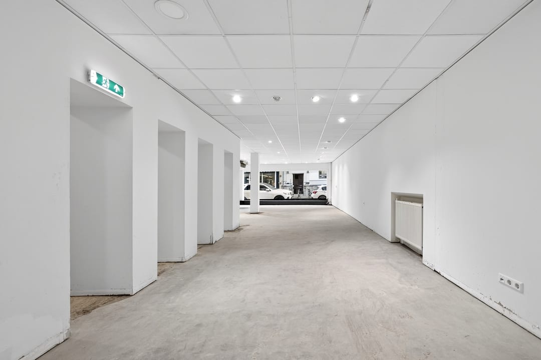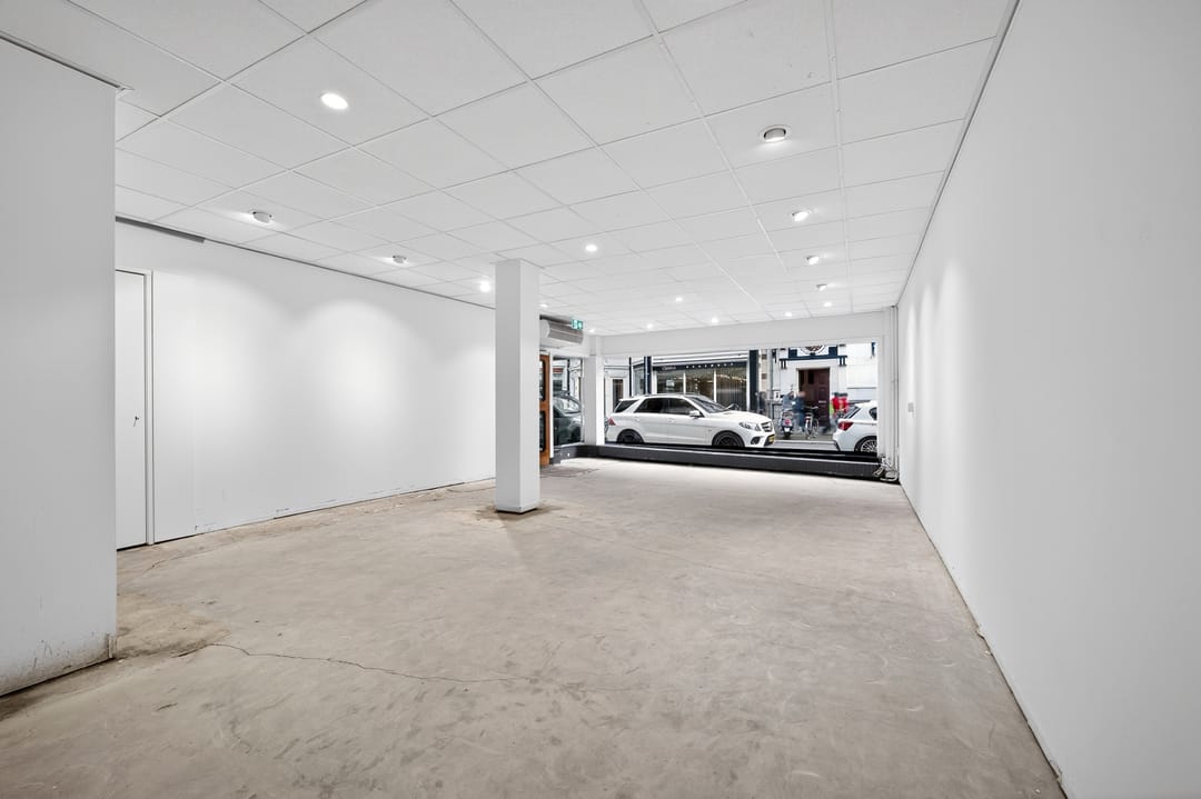 Ruimtelijk portaal geeft toegang tot de entree naar de winkelruimte. Via een grote glazen deur voor het ruimtelijk effect en licht, dat ook geholpen wordt door de grote etalageruiten, komt men binnen in de winkelruimte. Indien gewenst kan 's winters met het verwarmingsgordijn de deur open gehouden worden. Doordat er in het verleden een kunstgalerie in het pand heeft gezeten, is er aangenaam veel kunstlicht geinstalleerd wat ook goed te richten is. Voor is de winkelruimte 5,75m breed en halverwege komt er een breder deel bij. Hier is de totale breedte 7,25m, wat door een zuilengalerij speels wordt opgedeeld in tweeën. Vervolgens volgt het achterste deel van de winkelruimte. In dit achterste deel is een recent gemoderniseerde afgesloten pantry aanwezig en een apart toilet. In totaal is de ruimte ca. 15m diep.