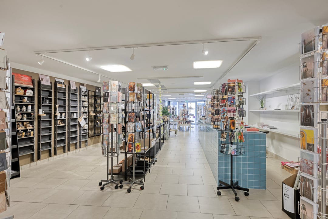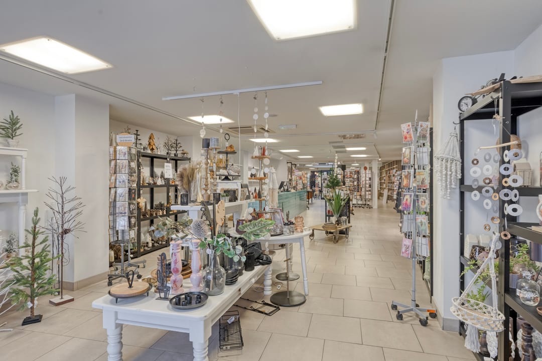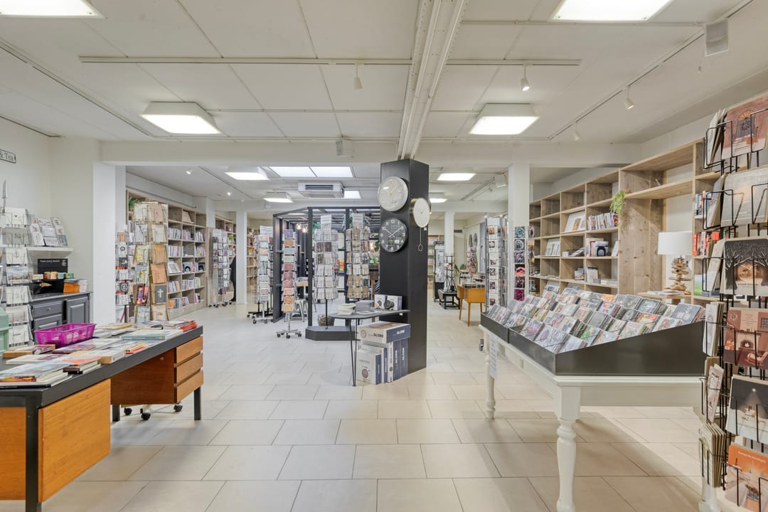 Begane grond: entree, winkelruimte, balie/kassaopstelling, magazijn- en opslagruimte en trapopgang naar verdieping