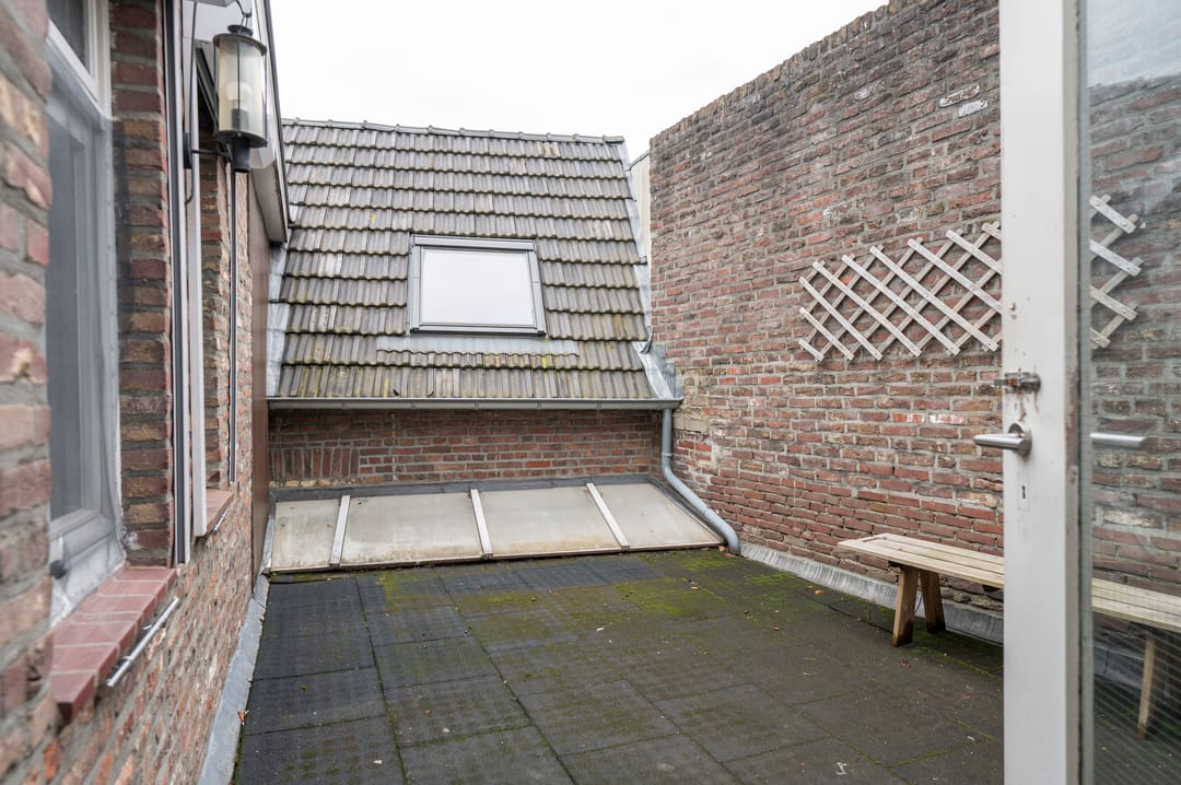 Op de eerste verdieping is een dakterras, te bereiken vanaf de overloop. Aan de achterzijde van het pand, op de begane grond, is het parkeerterrein waar vijf auto’s prima kunnen staan.