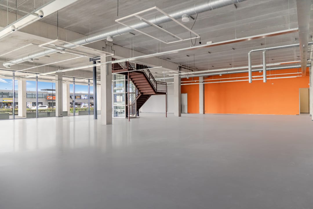 Verdeeld in ca. 867 m² showroom- winkelruimte en (optioneel) circa 40 m² tussenvloer in magazijn-/expeditieruimte