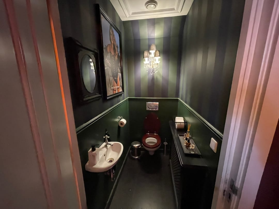 • glad afgewerkt plafond met verlichtingsarmaturen en geïntegreerde muziekboxen;