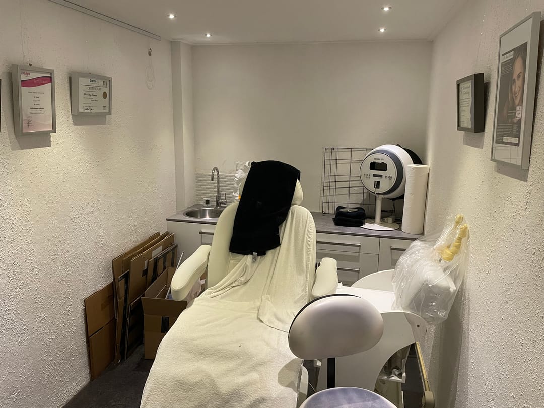 De computer, pin-apparaat, koffiemachine, spiegels, schilderijen, twee hanglampen boven de tafel, apparatuur voor beautybehandelingen, alle losse verzorgingsproducten en alle overige losse zaken worden niet ter overname aangeboden en zullen door vertrekkend huurder worden weggenomen.