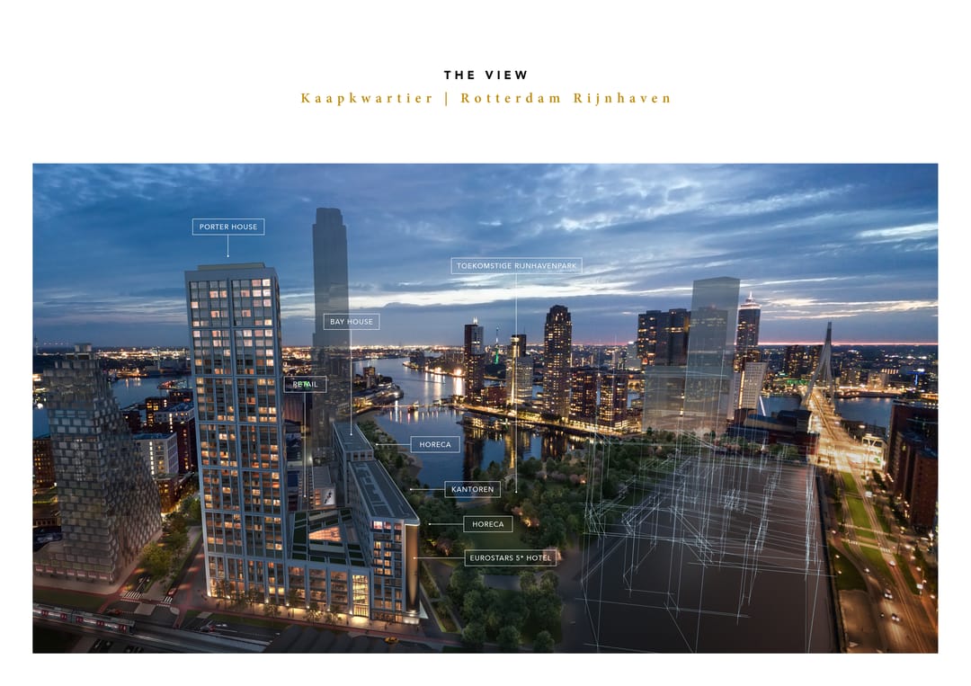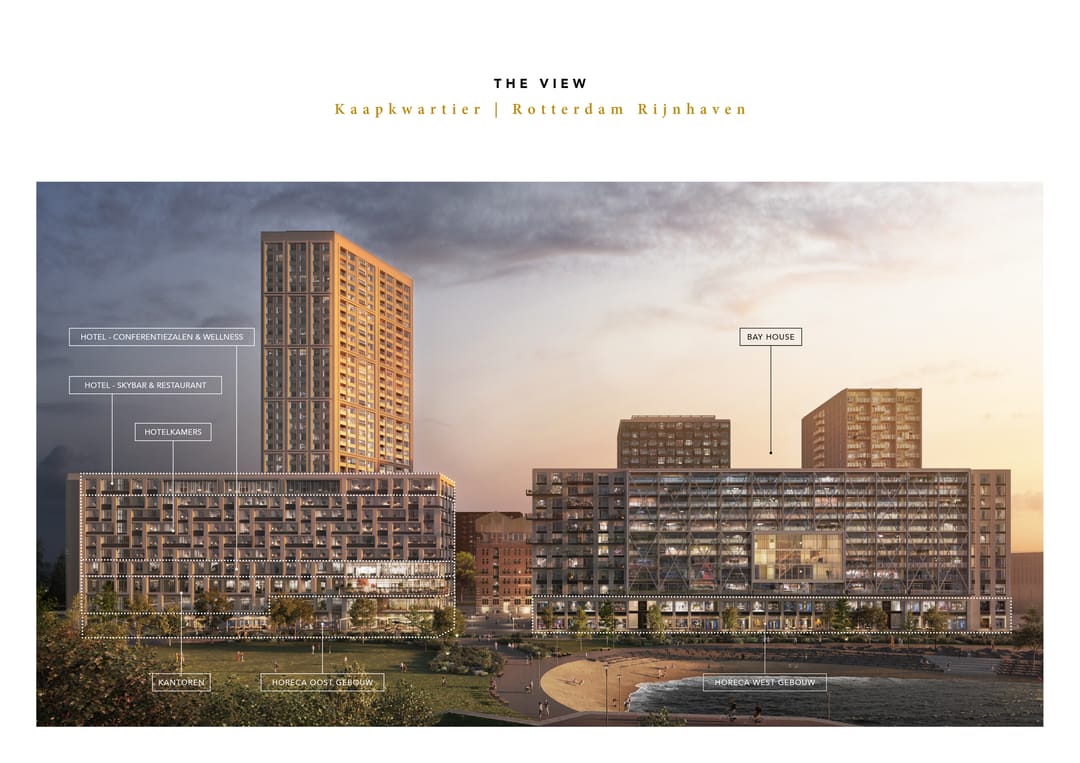 The View of Rotterdam: Een moderne ontwikkeling met uiteenlopende functies aan het water op het schiereiland Katendrecht in de Rijnhaven van Rotterdam.