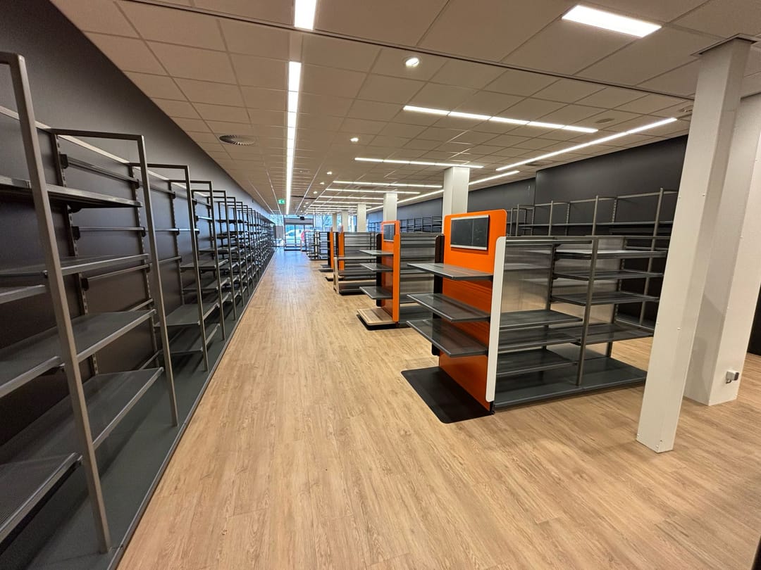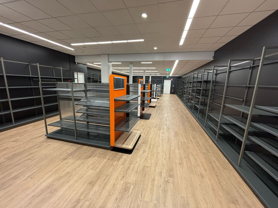 De complete winkelinventaris van Blokker is nog aanwezig.