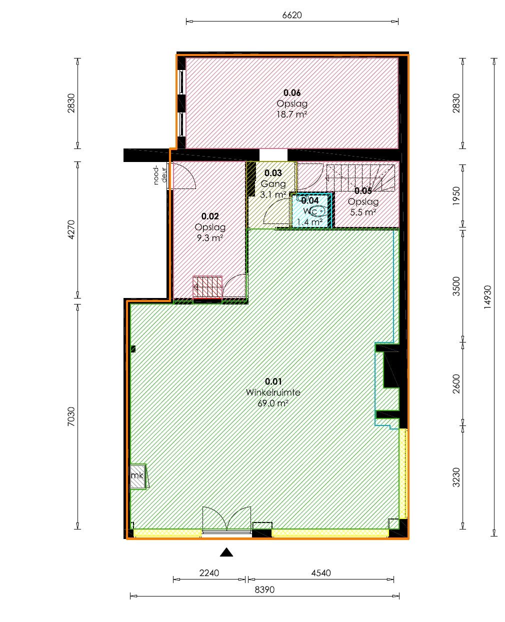 Begane grond: ca. 109 m² VVO (circa 70 m² verkoopoppervlak).