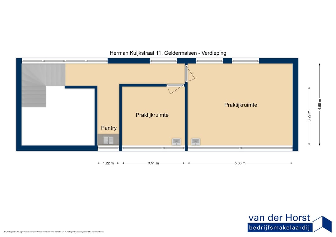 De door Van der Horst Bedrijfsmakelaardij en verhuurder verstrekte informatie dient uitsluitend te worden gezien als een uitnodiging tot nader overleg. Hoewel de informatie met de grootst mogelijke zorg is samengesteld wordt noch door de makelaar, noch door diens opdrachtgever, ingestaan c.q. aansprakelijkheid aanvaard voor de juistheid dan wel volledigheid van de verstrekte, nog te verstrekken of vermelde gegevens. Aan afwijkingen in de tekst, maten en tekeningen kunnen dan ook geen rechten worden ontleend.