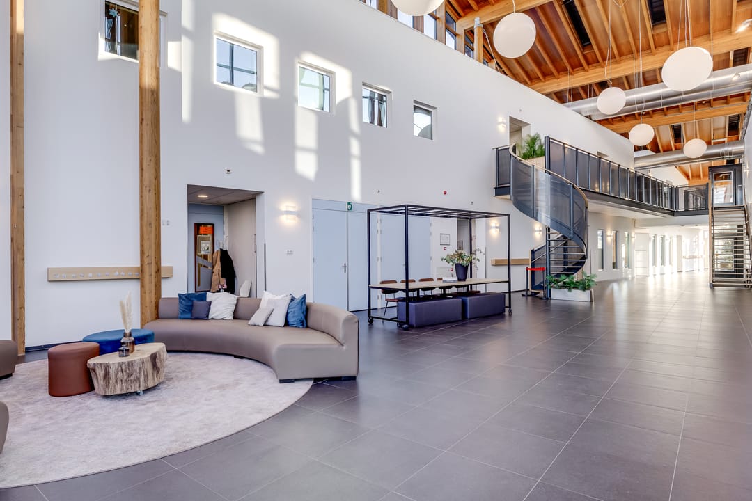 Een deel van de begane grond en een deel van de 1e verdieping, totaal circa 1.047 m2, zijn verhuurd aan de Kids Lodge Groep B.V., met een korte opzegtermijn.