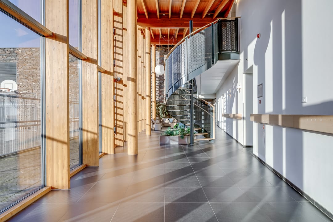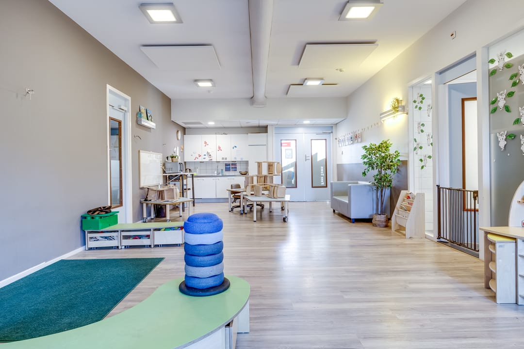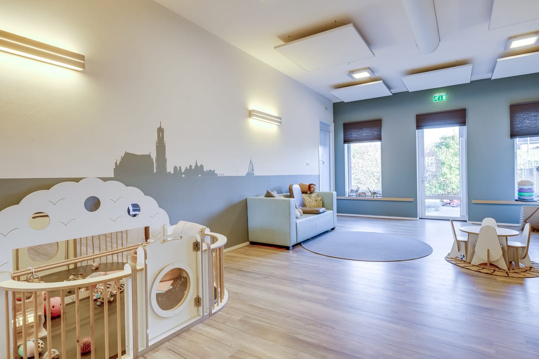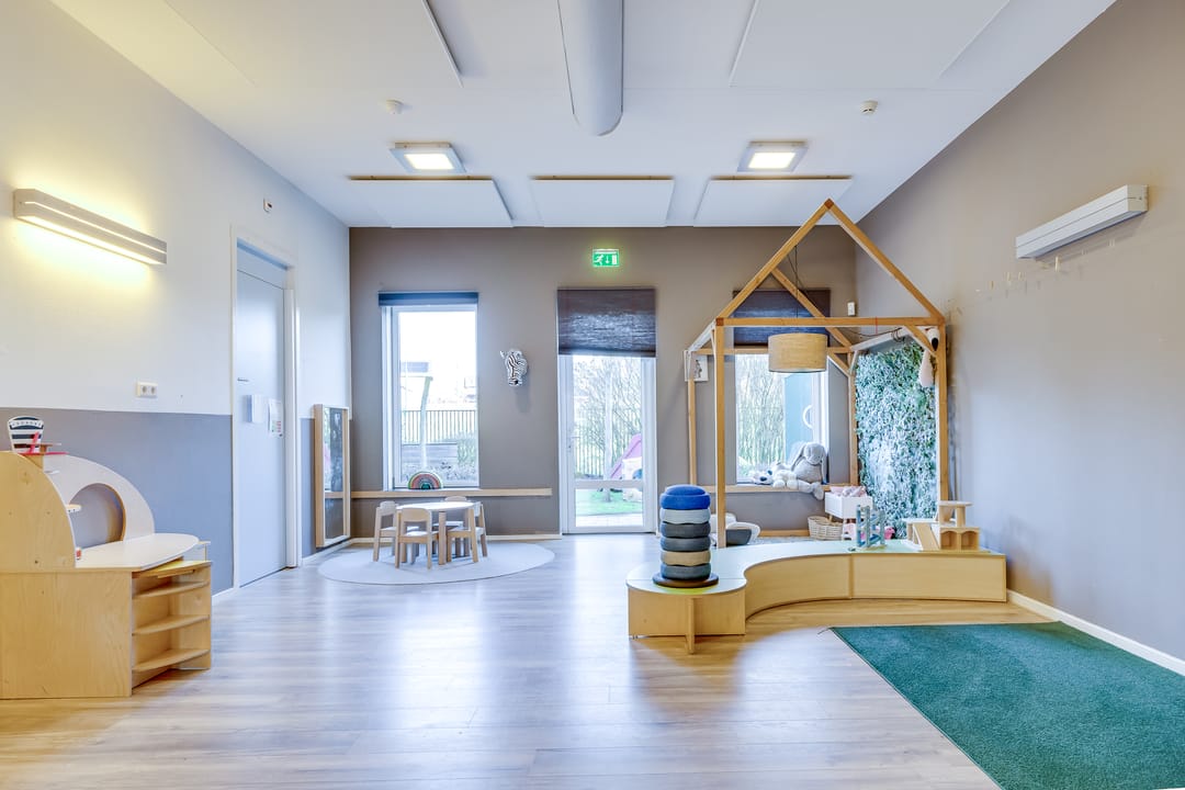 Het bouwdeel aan de linkerzijde doet dienst als hoogwaardig kindercentrum met lichte en ruime verblijfsruimtes en bijbehorende kantoor- en vergaderfaciliteiten. Op de verdieping zijn kantoor- en ruime gemeenschapsruimten, voor vergaderingen en evenementen, voorzien van een keukenruimte. Er is ook een bioscoopruimte met 21 zitplaatsen.