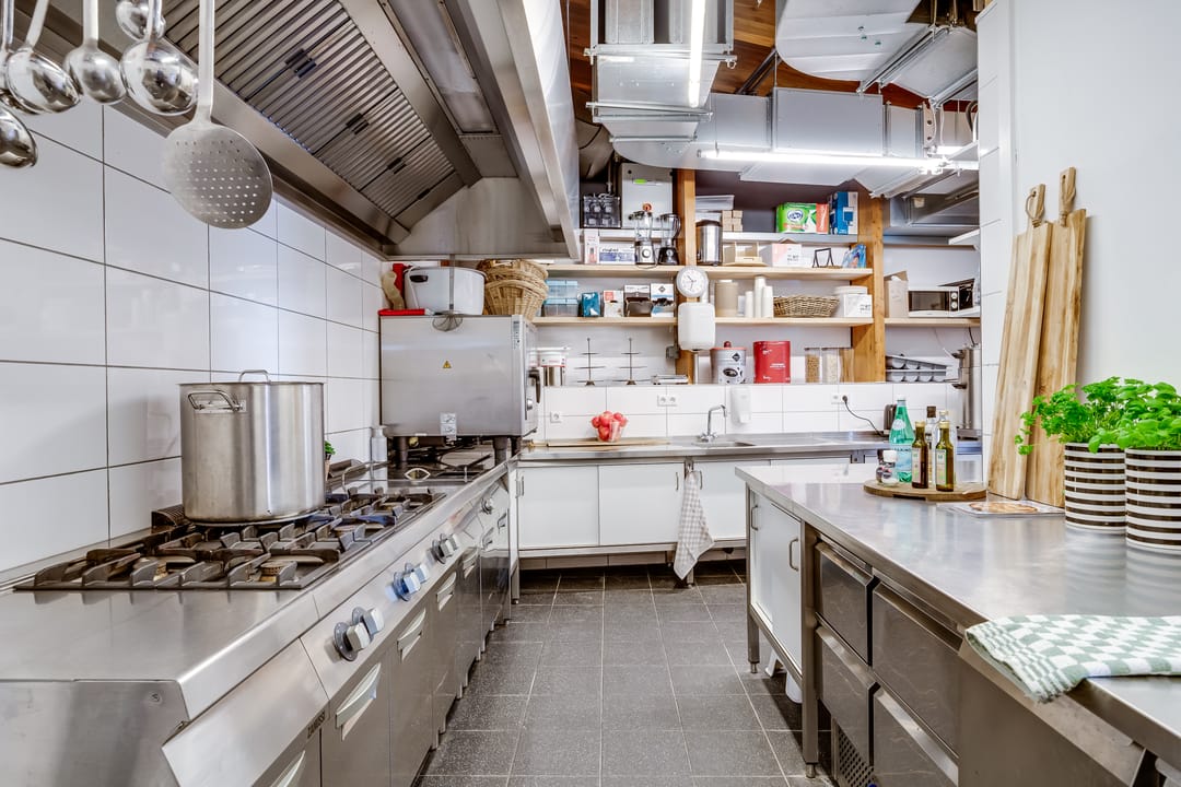 Voorts is op de begane grond een geheel ingerichte horecaverblijfsruimte met zitplaatsen en een professionele keuken met koelcel.