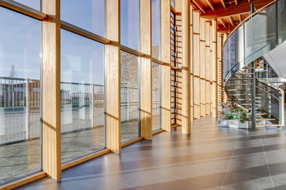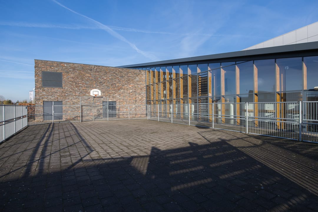 Het gebouw bestaat uit 3 bouwdelen, welke met elkaar zijn verbonden door een grote centrale entree met atrium en is totaal groot circa 2.565 m2 v.v.o. Op dit moment heeft het gebouw een mix aan gebruik, zijnde kinderopvang, bijeenkomstfunctie en sportfunctie.